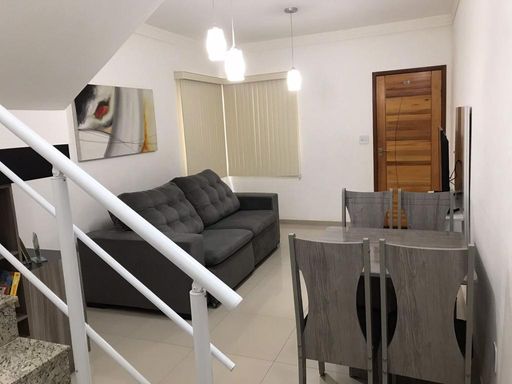 Vendo excelente casa com 2 quartos e banheiro social na parte superior, sala bem ampla com 2 ambientes, jardim de inverno, lavabo, área de serviço, área gourmet, quintal amplo, 1 vaga, portão automático, cerca eletrica, modulados ainda na garantia.